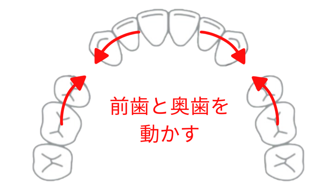 しかし抜歯後のすき間を埋めるためには、前歯だけでなく、奥歯も動かさなければいけません。