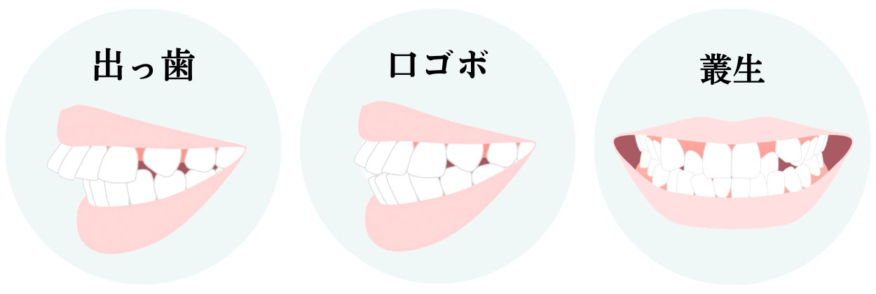 多くの場合、八重歯だけでなく、出っ歯や口ゴボ、叢生(ガタガタ)を併発しています。